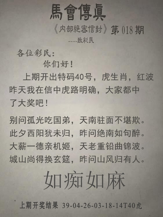 2026018期:马会传真
